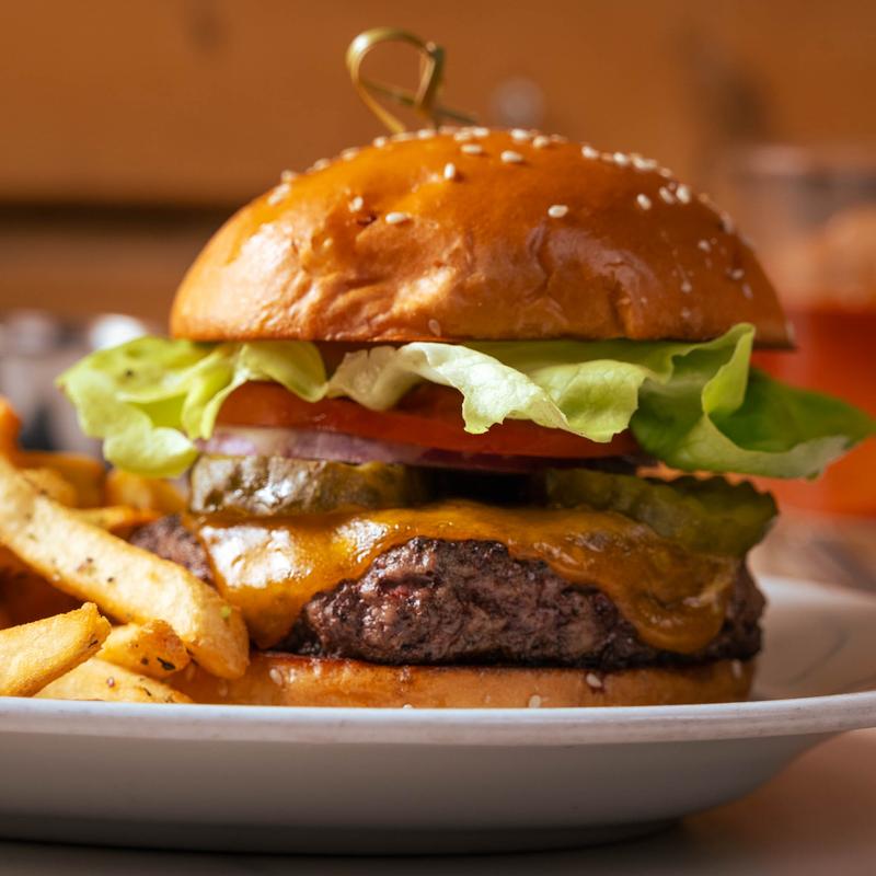 Smoked cheddar, red onions, butter lettuce, tomato, pickles, fancy sauce.